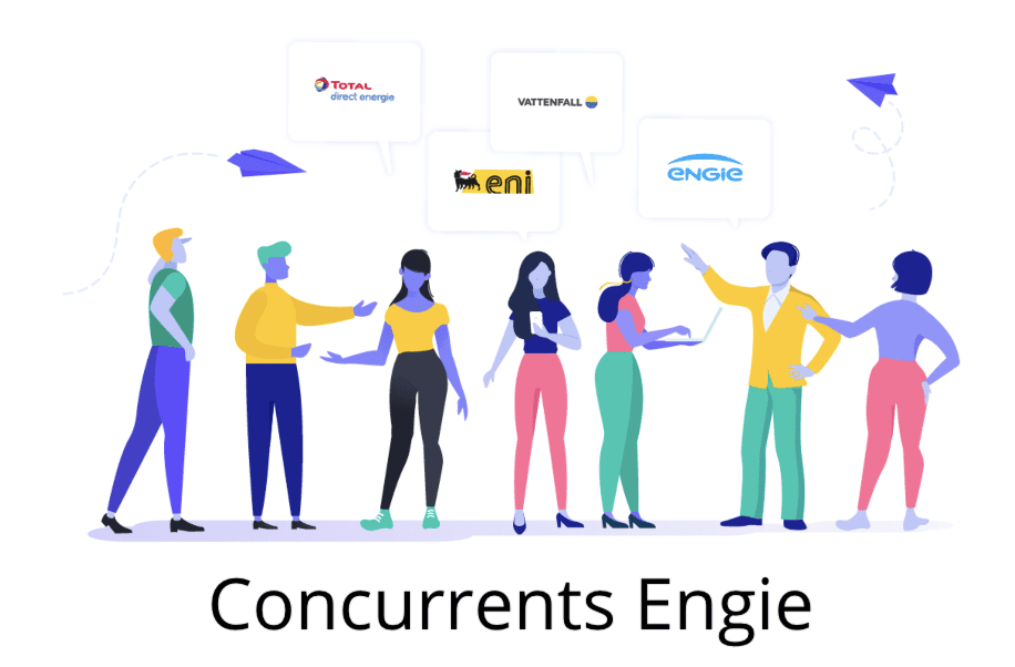 Les concurrents d'Engie sont les fournisseurs arrivés sur le marché après l'ouverture du marché de l'énergie à la concurrence en 2007. Engie est également en concurrence avec le fournisseur historique d'électricité EDF.