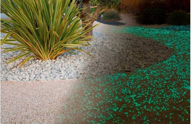 Dans l’obscurité, votre jardin se parera de féérie ! Il se transformera en un jardin lumineux grâce aux gravillons et galets Lumineral.